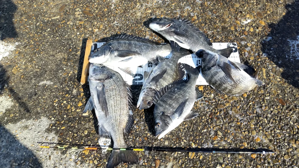 チヌSP400(5B)で渋い小さなアタリを拾い44cmまでを6枚釣る事が出来ました。
